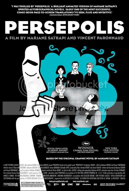 Dark, stylized, hypnotic cartoon recounts a young girl’s coming of age at the time of the Iranian revolution and beyond. Depressing film’s main character is difficult to like despite her tough life.