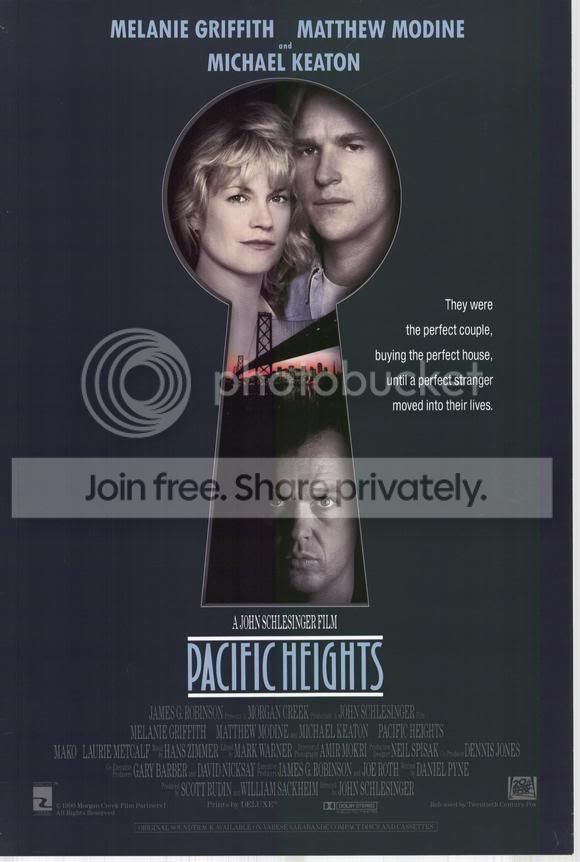 Suspenseful thriller about an unmarried couple who sublet their Victorian home to a menacing tenant. Hitchcockian tale gradually exposes their vulnerability so we share in the frustration of the young couple. Script also raises some interesting questions about California tenant laws. What makes this thriller so convincing is the unexpected path the story ultimately takes. Melanie Griffith shines as the more rational mind in the yuppie couple and Michael Keaton is effectively manipulative as Carter Hayes, a psychopathic con artist.